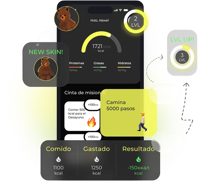 Pierde peso de forma saludable y divertida con gamificación y contador de calorías con IA. Toma una foto de tu comida y registra calorías y nutrientes al instante. Convierte tu progreso en un juego: cumple misiones diarias, gana monedas y mejora tu avatar en cada paso. Recibe recomendaciones de nutrición y ejercicio personalizadas, sigue tus avances y únete a desafíos de comunidad.