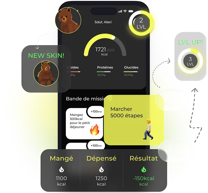 Une application basée sur l'IA qui analyse instantanément les aliments en protéines, graisses et glucides, et transforme la perte de poids en un jeu captivant avec des missions et l'amélioration de votre personnage.